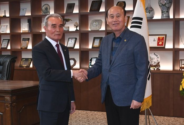 [한국기자연대] 박형덕 동두천시장은 지난 11일 종단 대순진리회 여주본부 도장을 찾아 학교법인 대진대학교 이사장, 대진대학교 총장 등 주요 관계자를 만나 지역 현안에 대해 논의했다.