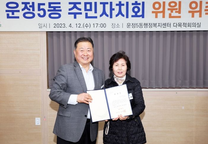 [한국기자연대] 파주시 운정5동은 12일 운정5동 행정복지센터 다목적회의실에서 ‘제1기 주민자치회 위원 위촉식’을 개최했다.
