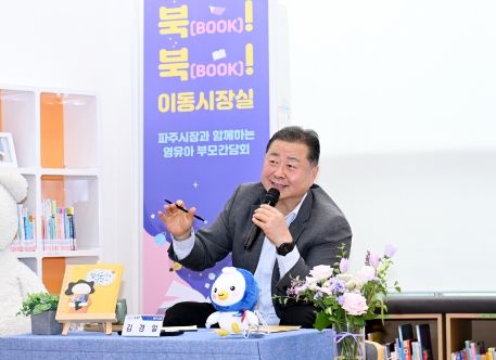 [한국기자연대] 김경일 파주시장이 12일 ‘제1회 도서관의 날’을 맞아 교하도서관에서 화목한 이동시장실을 열고 영유아 부모 및 시민들과 만남을 가졌다.