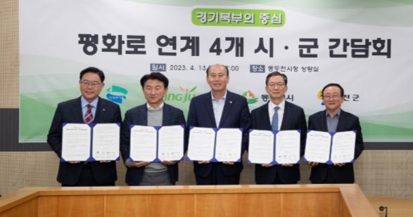 연천군은 지난 13일 동두천시청에서 열린 ‘평화로 연계 4개 시군 간담회’에서 김덕현 연천군수, 박형덕 동두천시장, 김동근 의정부시장, 강수현 양주시장이 공동 합의문을 채택했다고 밝혔다.