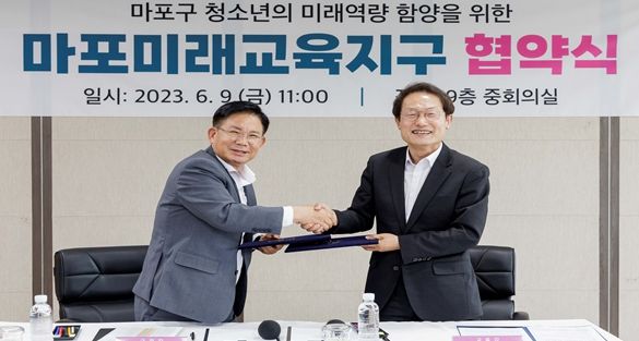 [한국기자연대] 마포구는 9일 오전 구청 중회의실에서 서울특별시 교육청과(교육감 조희연) ‘서울미래교육지구 업무 협약식’을 가졌다