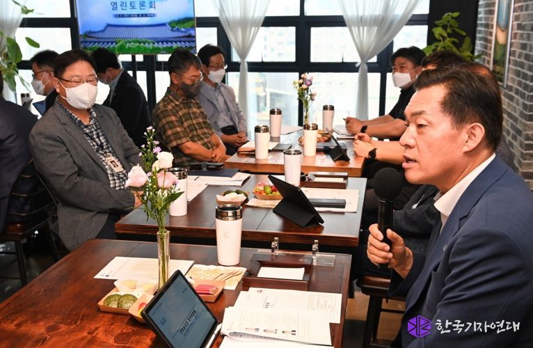 [한국기자연대] 이재준 수원특례시장과 간부 공무원들이 7월 29일 인계동 한 카페에서 ‘열린토론회’를 열고, 재정효율화 방안을 모색했다.