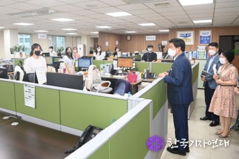 [한국기자연대] 조용익 부천시장이 지난 7월 29일 부천시보건소를 방문해 코로나19 방역 최일선에서 대응하고 있는 직원들을 격려하고 코로나19 재유행 대응체계를 점검했다.