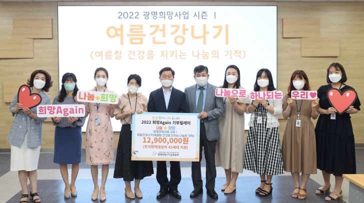[한국기자연대] 광명시는 4일 시청 중회의실에서 광명시 사회복지협의회의 희망 Again 기부릴레이 ‘광명희망사업 시즌1 여름건강나기 지원사업’ 성금 전달식을 진행했다.