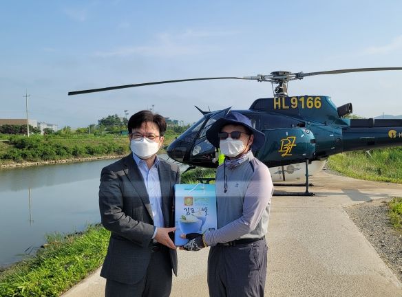 [한국기자연대] 김포시는 지난 7월 25일부터 29일까지 김포시 벼 재배 전면적(4,375ha)을 대상으로 김포시 특수시책인 벼 병해충 친환경 1차 항공방제를 실시했다고 밝혔다. 김병수 김포시장은 지난 7월 26일 이른 아침부터 항공방제 현장을 방문하여 추진상황을 점검하고 관계 공무원과 농업인, 헬리콥터 용역업체 직원 등 현장 작업자들을 격려했다.