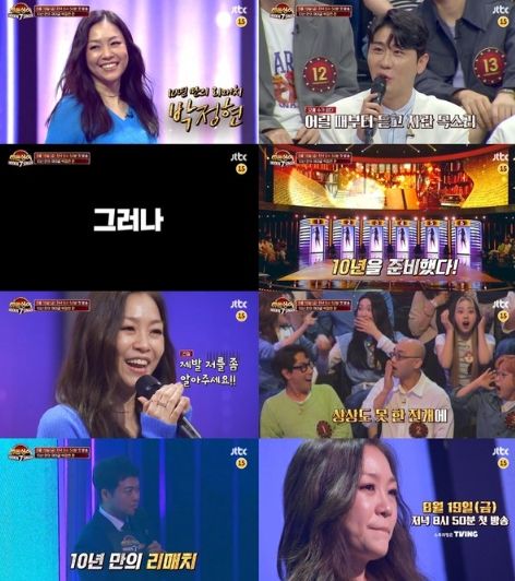 설상가상으로 “제발 저를 좀 알아주세요”라며 애원하는 박정현과 “박정현 씨는 탈락입니다”라고 외치는 MC 전현무의 멘트까지 더해 한 치 앞도 예측할 수 없는 반전 전개가 궁금해진다.