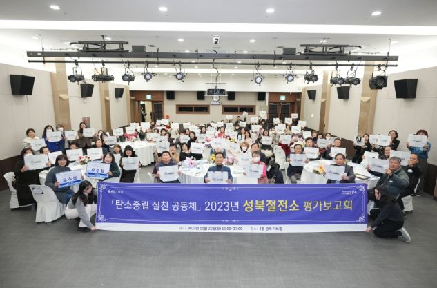 [한국기자연대] 서울 성북구가 지난 21일 구청 아트홀에서 2023년 탄소중립 실천 공동체 ‘성북절전소’ 평가보고회를 개최했다. 한 해 동안의 성과를 공유하고 활동 우수 절전소에 수상하는 축하의 자리를 마련했다.