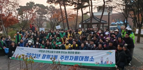 [한국기자연대] 서울 성북구 장위3동 마을공원에서 23일에 ‘2023년 11월 주민과 함께하는 자율대청소’를 실시해 장위3동 주민 및 11개 주민 단체, 환경미화 공무관, 공무원 등 130여 명이 참여했다.