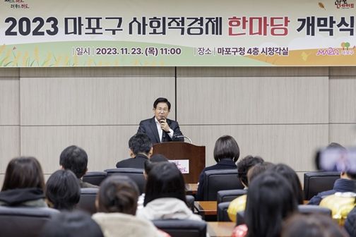 [한국기자연대] 박강수 마포구청장은 23일 오전, 구청 시청각실에서 열린 ‘2023년 마포구 사회적경제 한마당’ 개막식에 참석했다.