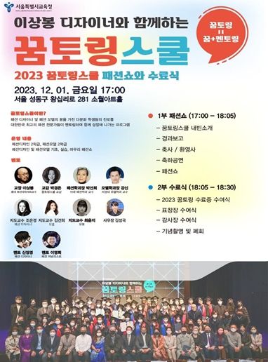 수료식에서는 『꿈토링스쿨』에 참여한 패션 디자인반 학생들의 빛나는 아이디어로 제작된 의상을 패션 모델반 학생들이 직접 입고 무대에 주인공으로 서도록 연출될 예정이다.