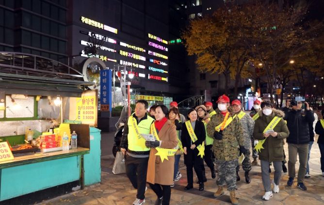 [한국기자연대] 강동구가 수능이 끝난 이후 지난 23일 천호동 로데오거리 주변 및 성내동 주꾸미 골목 일대를 중심으로 청소년유해환경 민‧관‧경 합동 캠페인을 실시했다.