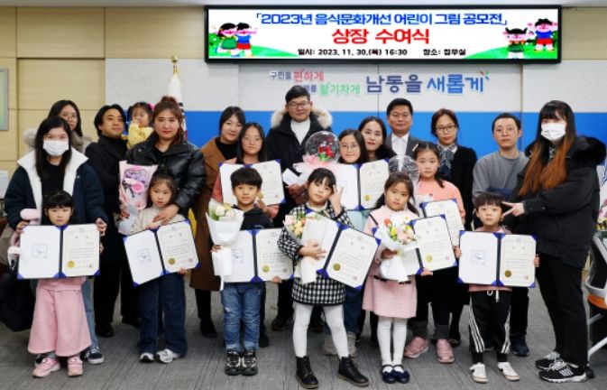 [한국기자연대] 인천시 남동구는 최근 구청장 집무실에서 “2023년 음식문화개선 어린이 그림 그리기 공모전” 상장 수여식을 개최했다고 5일 밝혔다.