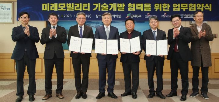 [한국기자연대] 전북도가 13일 도청 회의실에서 김관영 전북도지사를 비롯해 김종현 KGM커머셜 대표이사, 조영욱 KG S&C 대표이사, 이항구 자동차융합기술원장 등이 참석한 가운데 전라북도–KGM커머셜–KG S&C–자동차융합기술원 간의 미래모빌리티 기술개발 협력을 위한 업무협약을 체결했다고 밝혔다.