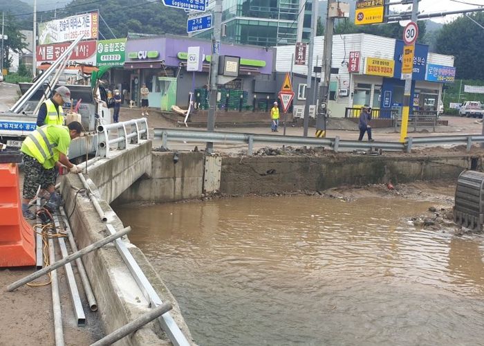 고기교 주변은 지난번 집중호우로 동막천이 범람하고, 하수가 역류해 다리와 주택ㆍ상가 등이 침수된 곳이다.