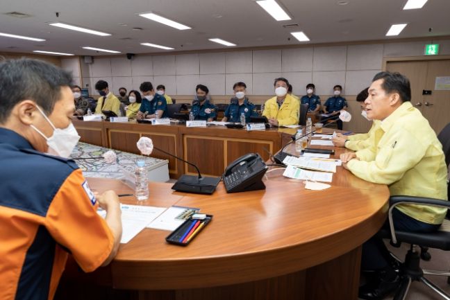 [한국기자연대] 이재준 수원특례시장은 16일 재난안전상황실에서 ‘2022 을지연습 연계 3분기 통합방위협의회’를 주재하고, “을지연습을 실전같이 치러 언제 닥칠지 모르는 위기에 철저하게 대비해야 한다”고 강조했다.