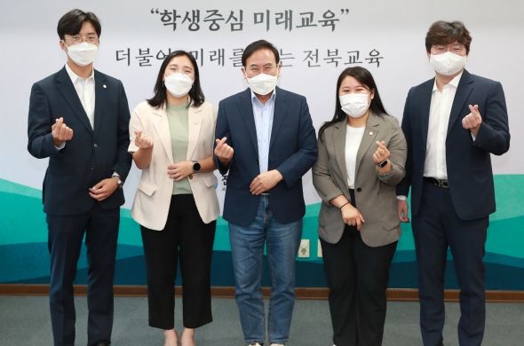 서 교육감은 16일 오전 교육감실에서 장병익(완산동,중화산1·2동), 이성국(효자5동), 최서연(진북동, 인후1·2동, 금암1·2동), 신유정(조촌동, 여의동, 혁신동) 의원 등 전주시의회 2030 초선의원 4명과 간담회를 진행했다.