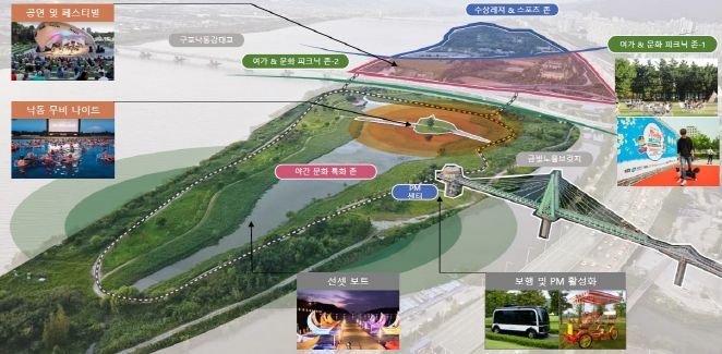 수상공연장을 조성하여 계절별 특색 있는 페스티벌 및 공연, 전광판을 활용한 미디어아트 축제 등을 추진하고, 가족애놀이터는 공연장과 낙동강의 낙조를 구경할 수 있는 피크닉 존 및 어린이놀이터 등을 조성하여 관광객들의 이목을 끌 예정이다. 이로써 화명생태공원 연꽃단지 내 야간경관 조성지와 더불어 서부산 대표 관광지를 조성한다는 계획으로, 올해 각종 행정절차를 진행하여 이르면 2025년에 착공하여 2027년 완공할 예정이다.