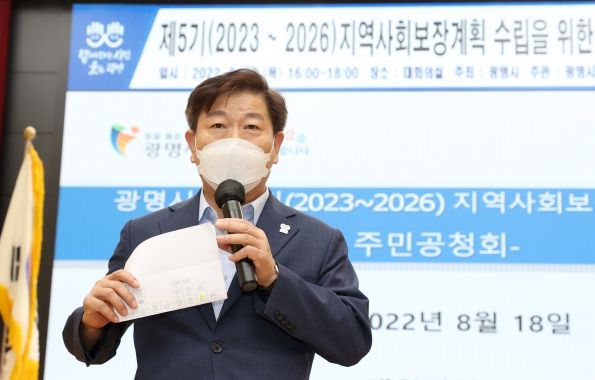 [한국기자연대] 광명시는 지난 18일 시청 대회의실에서 지역주민과 지역사회보장협의체 위원, 복지 분야 전문가, 공무원 등 110여 명이 참석한 가운데 광명시 제5기(2023~2026) 지역사회보장계획 수립을 위한 주민공청회를 개최했다.