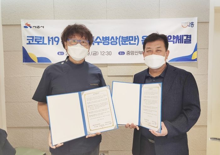 [한국기자연대] 시흥시가 지난 19일 코로나19 확진 임산부의 안전한 분만을 도모하는 특수병상(분만) 운영을 위해 관내 중앙산부인과의원과 업무 협약을 맺었다.