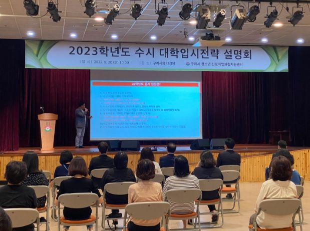[한국기자연대] 구리시는 20일, 구리시청 대강당에서 ‘2023학년도 수시전형 대비 대학입시전략’ 설명회를 개최했다.