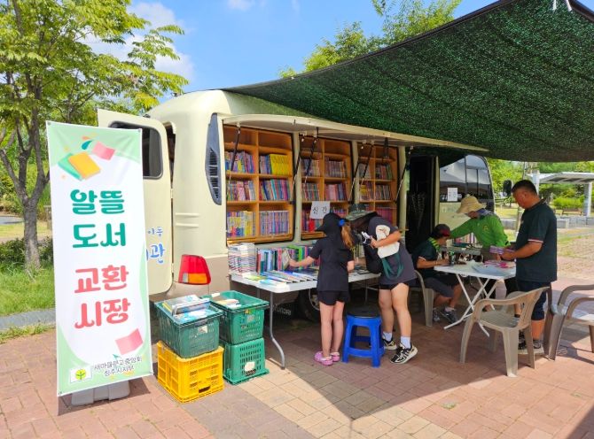 [한국기자연대] 새마을문고중앙회청주시지부(회장 김대형)는 22일 흥덕구 문암생태공원에서 청주시민과 함께하는 책 나눔 축제 ‘알뜰도서 교환시장’을 운영했다.