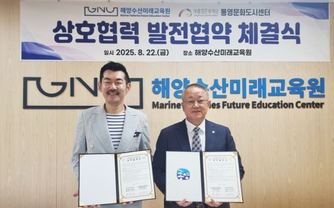 [한국기자연대] 경상국립대학교 해양과학대학 해양수산미래교육원과 (재)통영문화재단 통영문화도시센터는 8월 22일 해양수산미래교육원에서 해양수산 미래 인재 양성과 지역문화 발전을 위해 업무협약(MOU)을 체결했다.