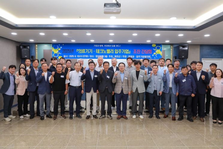 [한국기자연대] 옥천군이 10일 '의료기기·테크노밸리 입주기업 조찬간담회'를 개최했다.