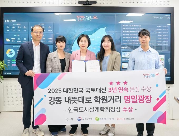 [한국기자연대] 강동구는 지난 18일 ‘2025 대한민국 국토대전’에서 ‘강동 내뜻대로 학원가 명일광장 조성사업’으로 한국도시설계학회장상을 수상했다고 24일 밝혔다.