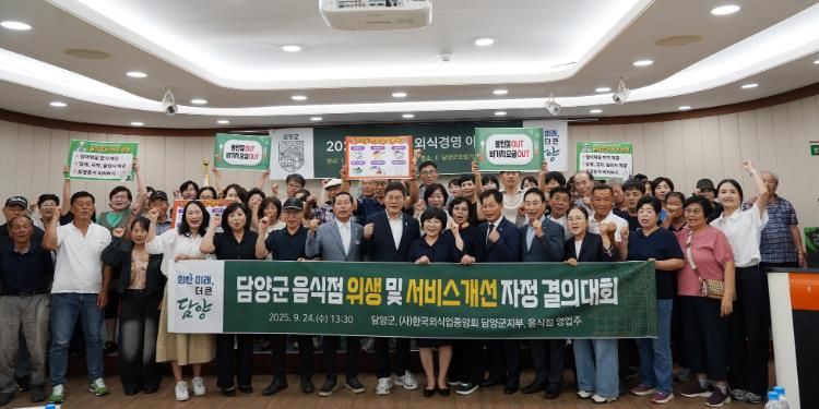 [한국기자연대] 담양군은 24일 농업기술센터 강당에서 외식업 종사자 100여 명과 함께 ‘친절 실천 및 서비스 개선 자정 결의대회’를 열고 불친절·비위생 문제 예방과 관광 이미지 개선을 다짐했다.