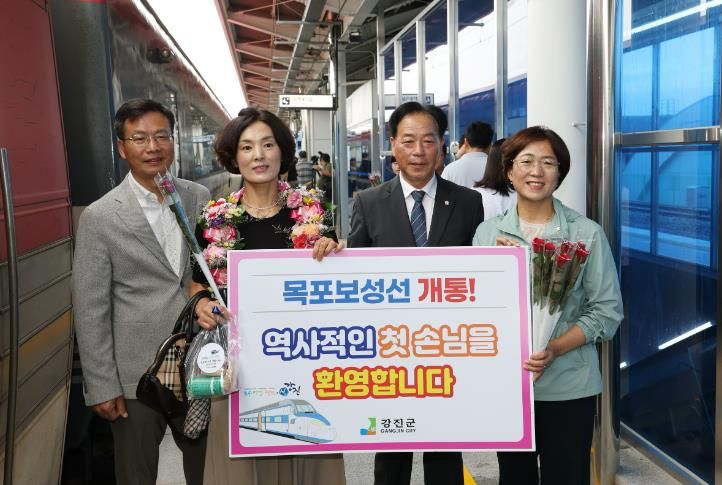갑작스런 다른 일정으로 현장에 함께 하지 못한 강진원 강진군수는 “100년 넘게 기다려온 철도가 오늘 강진 땅에 도착했다”며 “이 역사적인 순간을 함께하는 첫 손님들께 군민들의 따뜻한 환영을 전하고 싶다. 앞으로 기차 개통을 발판으로 관광과 지역경제가 더욱 활기를 띨 것”이라고 강조했다