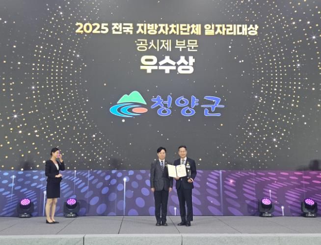 [한국기자연대] 청양군은 지난 30일 청주오스코 2층 그랜드볼룸에서 열린 고용노동부 주관 ‘2025 전국 지방자치단체 일자리대상’ 공시제 부문에서 우수상을 수상했다고 밝혔다.