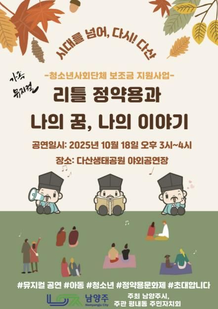 [한국기자연대] 남양주시는 오는 10월 18일 조안면 다산생태공원에서 아동·청소년 대상 가족뮤지컬인 ‘리틀 정약용’을 선보인다.
