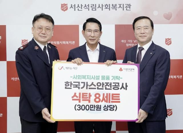 [한국기자연대] 충남 서산시는 지난 1일 한국가스안전공사가 서산석림사회복지관에 3백만 원 상당의 테이블과 의자 8세트를 전달했다고 밝혔다.