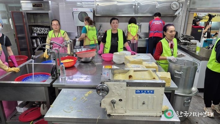 [한국기자연대 김순연 기자] “행복은 나누모 배가 된다 카이”, “요래 모여가 세상 바꾸는 기라" 1일 대구시 달서구에 소재한 월성종합사회복지관 ‘짜장면 나눔 봉사'현장이 왁짝지껄 투박한 경사도 사투리 ‘행복짜장면봉사단'의 웃음꽃으로 복지관을 따뜻하게 수놓았다.