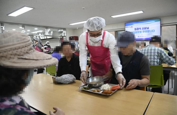 [한국기자연대] 최경식 남원시장이 지난 10일 기능보강이 완료된 남원사회복지관 경로식당을 방문해 배식 봉사를 진행하며 어르신들과 소통하는 시간을 보냈다.
