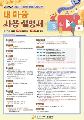 [한국기자연대] 경기도교육복지종합센터가 경기도교육청 소속 초 중 고등학교 학생들을 대상으로 ‘2025년 경기도 학생 영상 공모전’을 개최한다.