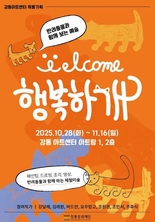 [한국기자연대] 강동문화재단은 오는 10월 28일부터 11월 16일까지 강동아트센터 아트랑에서 반려동물과 함께 예술을 경험할 수 있는 전시 《행복하개展》을 선보인다.