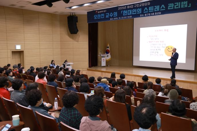 [한국기자연대] 울산 동구는 10월 22일 오후 2시 5층 중강당에서 오한진 교수의 ‘스트레스 관리법’이라는 주제로 강연을 개최했다.