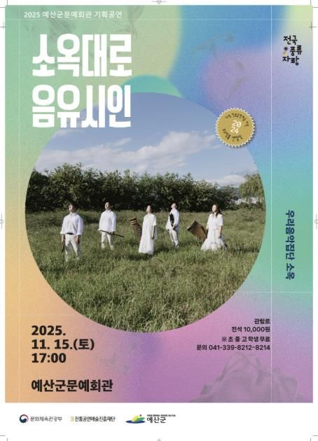 [한국기자연대] 예산군문예회관은 오는 11월 15일 오후 5시, 퓨전국악 공연 ‘소옥대로 음유시인’을 선보인다.