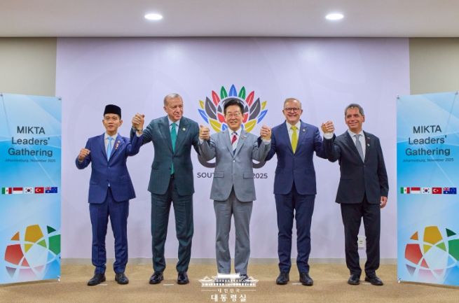 [한국기자연대] 주요 20개국(G20) 정상회의 참석을 위해 남아프리카공화국을 방문한 이재명 대통령은22일(현지시간) 오후 우리나라, 멕시코, 인도네시아, 튀르키예, 호주 5개국으로 구성된 믹타(MIKTA) 회원국 정상들과 회동했다.