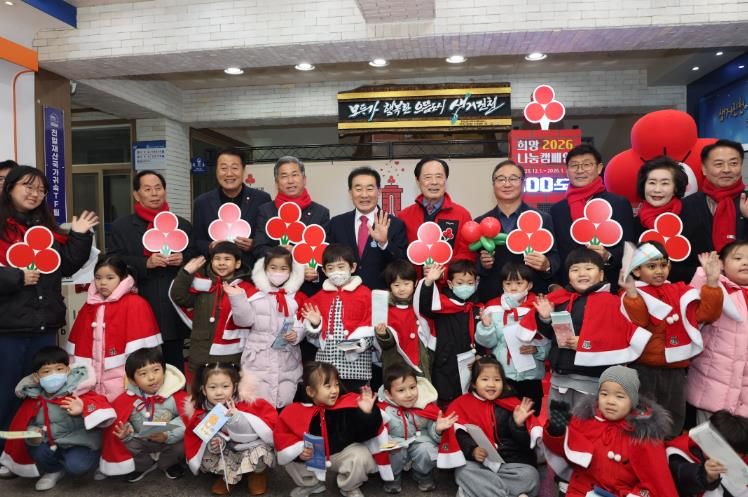 [한국기자연대] 충북 진천군은 5일 진천군청 중앙현관에서 충북사회복지공동모금회와 함께 ‘희망2026나눔캠페인’ 사랑의 온도탑 제막식과 현장순회모금 행사를 개최했다.