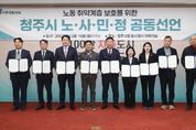 [한국기자연대] 청주시 노사민정협의회는 16일 임시청사 대회의실에서 2025년 제2차 청주시 노사민정협의회를 열고, 청주시 노동정책의 첫 중장기 종합계획인 ‘청주시 노동존중정책 기본계획(2026~2030)’에 대한 심의를 진행했다. 회의는 이범석 청주시장 주재로 홍성수 한국노총 충북본부 청주지역지부 의장, 이태희 충북경영자총협회 회장을 비롯해 노동계, 경영계, 시민사회, 지방정부를 대표하는 노(勞)·사(使)·민(民)·정(政) 위원 9명이 참석한 가운데 열렸다. 이날 심의된 청주시 노동존중정책 기본계획은 그동안 개별적·단편적으로 추진돼 온 노동 관련 정책을 종합·체계화한 청주시 최초의 중장기 계획으로, 향후 5년간 청주시 노동정책의 비전과 추진 방향을 담고 있다. 아울러 2026년 노사민정협력 활성화 사업 추진계획에 대한 심의를 통해, 기본계획의 정책 방향을 현장 중심의 협력사업으로 구체화하는 방안도 함께 논의했다. 특히 플랫폼·특수고용·파견 노동자 등 노동 취약계층의 권익 보호와 안전한 노동환경 조성을 위해 노사민정이 공동의 책임 아래 협력해 나갈 것을 다짐하는 ‘노동 취약계층 보호를 위한 공동선언