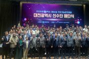 [한국기자연대] 대전시는 27일 대전 롯데시티호텔에서 제60회 전국기능경기대회 대전선수단을 격려하기 위해 해단식을 개최했다고 밝혔다. 이날 행사에는 권경민 대전시 경제국장, 유지완 대전시 부교육감, 고재철 한국산업인력공단 대전지역본부장, 박인규 충남기계공업고등학교장, 김용이 (사)대전광역시 명장·장인 협회장을 비롯해 입상선수 및 지도교사, 학교장 등 관계자 120여 명이 참석했다. 해단식은 대회 경과보고를 시작으로 입상 선수 시상 및 유공자 표창, 기념사와 기념촬영 순서로 진행됐다. 올해 전국기능경기대회는 광주광역시 김대중컨벤션센터 등 6개 경기장에서 개최됐으며, 폴리메카닉스 등 51개 직종에 전국 1,725명의 선수가 참가, 이 중 대전선수단은 공업전자기기 등 32개 직종에 78명의 선수가 참가해 열띤 경쟁을 펼친 결과 충남기계공업고등학교 2학년 이강산 선수의 보석가공직종 금메달 획득을 시작으로 제과, 공업전자기기 직종에서 금메달을 추가하며 총 17개 직종에서 25명(금 3, 은 4, 동 4, 우수상 1, 장려상 13)이 입상하는 성과를 거뒀다. 이들에게는 금메달 1,000만 원, 은메달 600만