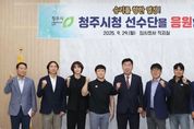 [한국기자연대] 이범석 청주시장은 29일 임시청사 직지실에서 제106회 전국체육대회 출전을 앞두고 있는 직장운동경기부 선수단 감독들을 만나 격려했다. 오는 10월 17일부터 23일까지 부산광역시 아시아드주경기장을 포함한 82개 경기장에서 개최되는 전국체육대회에, 청주시 선수단은 총 328명이 27개 종목에 출전한다. 이 중 청주시청 직장운동경기부는 8개 부문*에 50명의 선수가 출전해 청주시의 위상을 드높일 예정이다. 감독들로부터 출전보고를 받은 이범석 시장은 “선수 여러분의 열정과 땀은 이미 청주시의 자랑”이라며 “이번 전국체전에서도 자신감을 갖고 그동안 갈고닦은 실력을 마음껏 펼쳐주시길 바란다. 청주시민들과 함께 여러분을 응원하겠다”고 따뜻한 격려와 응원의 메시지를 전했다.