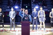 [한국기자연대] 이재준 수원특례시장이 4일 수원KT소닉붐아레나에서 열린 ‘2025-2026 프로농구 KBL 홈 개막전’에서 개막선언을 했다. 수원KT소닉붐과 부산KCC의 홈 개막전에서 축사를 한 이재준 시장은 “시민과 함께 수원KT 소닉붐의 우승을 기원하며 시민들과 함께 응원하겠다”고 말했다. 이재준 시장은 개막선언을 했다. 수원KT소닉붐은 개막전에서 85대 67로 승리했다.