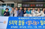 [한국기자연대] 청주국제로타리 3740지구 5지역 합동(청주상당, 리더스, 나눔, 선우, 은하수, 일등RC)은 19일 청주시 아동복지과를 찾아 드림스타트 가정에 전해달라며 쌀 200kg을 전달했다. 청주국제로타리 5지역은 각종 행사와 신규회장 취임 시 축하 화환 대신 받은 쌀을 모아서 후원 물품을 마련했다. 시는 아동통합사례관리사를 통해 기탁받은 쌀을 도움이 필요한 20개 가구에 전달할 계획이다. 조종훈 리더스로터리 회장은 “작은 보탬과 발걸음이 취약계층 아동들에게 꾸준히 연결될 수 있도록 앞으로도 노력하겠다”고 기탁 소감을 밝혔다. 시 관계자는 “항상 소외되는 이웃이 없도록 봉사에 앞장서 주시는 로터리 회원님들께 감사드린다”며 “취약계층 아동들에게 나눔의 온기가 전해질 수 있도록 지속적으로 노력하겠다”고 말했다. 한편, 드림스타트는 지역 취약계층 중 12세 이하 아동 및 가족, 임산부에게 분야별 맞춤형 통합서비스를 제공하는 사업이다.
