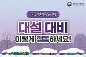 [한국기자연대] ■ 대설 짧은 시간에 급격히 눈이 쌓이게 되므로 차량·산간 고립, 교통사고, 쌓인 눈으로 인한 시설물 붕괴 등의 피해가 발생될 수 있습니다. ※ 습기를 많이 머금은 습설의 경우 3~10배 무거워져 시설물 붕괴 등 피해 우려가 큼 겨울철에는 다음 사항을 숙지해 가족이나 이웃과 함께 피해를 예방할 수 있도록 미리 준비합니다. 대설 행동요령 ① 기상정보를 수시로 확인해 대설·습설에 대비 ※눈이 쌓이면 가급적 외출을 자제하고 대중교통 이용하기 대설행동요령 ② 내 집·점포 앞 눈은 내가 치워 낙상사고를 예방하고, 미끄럼 사고 대비 자전거, 전동킥보드 등 이용 금지 대설 행동요령 ③ 제설작업은 주간에 2인1조 이상, 안전 확보 후 실시하며, 심야제설, 지붕 올라가기 등 무리한 작업 금지 ※ 눈이 많이 쌓였을 경우 안전한 곳으로 신속히 대피 대설 행동요령 ④ 가로수, 노후 시설 등 붕괴·전도 위험구조물 접근금지 및 위험징후 포착 시 즉시 대피 후 신고 ※ 노후 축사, 임시천막, 비닐하우스 등은 미리 점검·보강 대설 행동요령 ⑤ 적설·결빙 도로에서는 안전거리 유지 및 서행