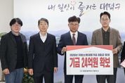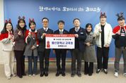 [한국기자연대] 천창수 울산광역시교육감이 5일 울산광역시와 사회복지공동모금회가 공동 기획해 추진하는 ‘7천 원 기부 참여 잇기(릴레이)’ 홍보 활동에 동참했다. 이번 참여 잇기는 개인 소액 기부를 활성화하고자 마련된 시민 참여 기부 활동으로, 울산 시민 110만 명이 1인당 7,000원씩 기부하면 온도탑 목표액 72억 5,000만 원을 달성할 수 있다는 취지에서 시작됐다. 천 교육감은 김두겸 울산시장의 지명을 받아 이번 참여 잇기에 동참했으며, 다음 참여자로 김종훈 동구청장과 장석근 한국산업인력공단 울산지사장을 지목했다. 같은 날 오전 8시부터 30분 동안 교육청 1층 책마루 앞에서 전 직원도 함께 이번 홍보 활동에 자발적으로 동참하며 나눔을 실천했다. 천창수 교육감은 “시민 한 사람 한 사람의 따뜻한 마음이 모여 더 큰 나눔을 만드는 의미 있는 활동에 우리 교육청 전 직원도 함께 앞장서겠다”라고 말했다.