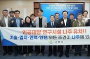 [한국기자연대] 전라남도 나주시가 정부의 차세대 전력망(K-그리드) 구축 정책에 발맞춰 차세대 전력산업 중심도시로 도약하기 위한 지역 전략 마련에 나섰다. 나주시는 22일 시청 이화실에서 ‘이재명 정부의 에너지 정책과 나주의 역할’을 주제로 정책 간담회를 열고 정부의 전력망 혁신 정책 대응 방향과 기관 간 협력 방안을 논의했다고 밝혔다. 이날 간담회에는 윤병태 시장을 비롯해 전남테크노파크, 녹색에너지연구원, 에너지밸리기업개발원, 한국기계전기전자시험연구원, 한국전자기술연구원, 한국에너지공과대학교, 동신대학교 등 지역 에너지 유관기관과 대학 관계자들이 참석했다. 참석자들은 인공태양(핵융합) 연구시설 유치, 직류(DC) 기반 전력산업 육성, K-그리드 인재 및 창업 밸리 조성 등 주요 과제를 공유하고 R&D, 인프라, 기업 지원, 인재 양성 등 4대 분야별 협력 방안을 집중적으로 논의했다. 또한 간담회 참석자들은 ‘인공태양 연구시설 나주 유치’를 염원하는 퍼포먼스를 진행하며 정부 공모사업 대응 의지를 함께 다졌다. 참석자들은 “나주는 에너지밸리 혁신도시를 중심으로 연구와 산업 생태계가 조성된