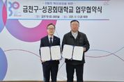 [한국기자연대] 금천구는 G밸리 혁신성장을 위해 지난 12일 금천구청 소회의실에서 성공회대학교와 업무협약을 맺었다고 밝혔다. 이에 따라 양 기관은 G밸리 기업 지원, 인재양성, 공동연구, 인프라 협력 등을 추진한다. 구체적으로 G밸리 기업 수요에 맞춰 교육 및 인턴십 프로그램 개발하고 G밸리 기업 재직자 직무능력 향상을 위한 교육을 운영한다. 대학의 교육과 연구를 기반으로는 공동기술을 개발하고 서비스와 조직을 혁신하는 한편 기술, 콘텐츠, 데이터를 기반으로 기업지원을 강화한다. 대학·지자체·기업이 보유한 인프라를 공동 활용해서 실질적인 협력사업도 추진한다. 특히 기술 고도화와 전문 인력 수급 부족 문제를 겪는 G밸리 중소기업들을 대상으로 한 지원 프로그램을 중점적으로 마련할 계획이라고 구는 강조했다. 구는 이번 협약은 성공회대학교가 보유한 연구역량을 G밸리 산업 구조와 연계해, 지역 기업이 필요로 하는 실무형 인재를 양성하고 기업혁신을 지원하는 데 의미가 있다고 설명했다. 실제로 성공회대학교는 정보통신(IT), 인공지능(AI) 등에 특화되어 있어 G밸리 산업 구조와 연계한 전문 인재 양성에 적합한